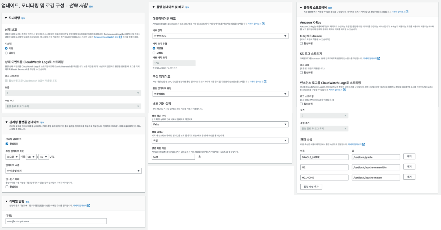 이 부분 이후부터는 스터디가 필요할 것으로 보인다. AWS의 배경지식이 없다면 쉽사리 건드리지 못할 용어와 설정인 것 같다. 그래도 배포 실습이 목적이니 계속 진행해본다.
