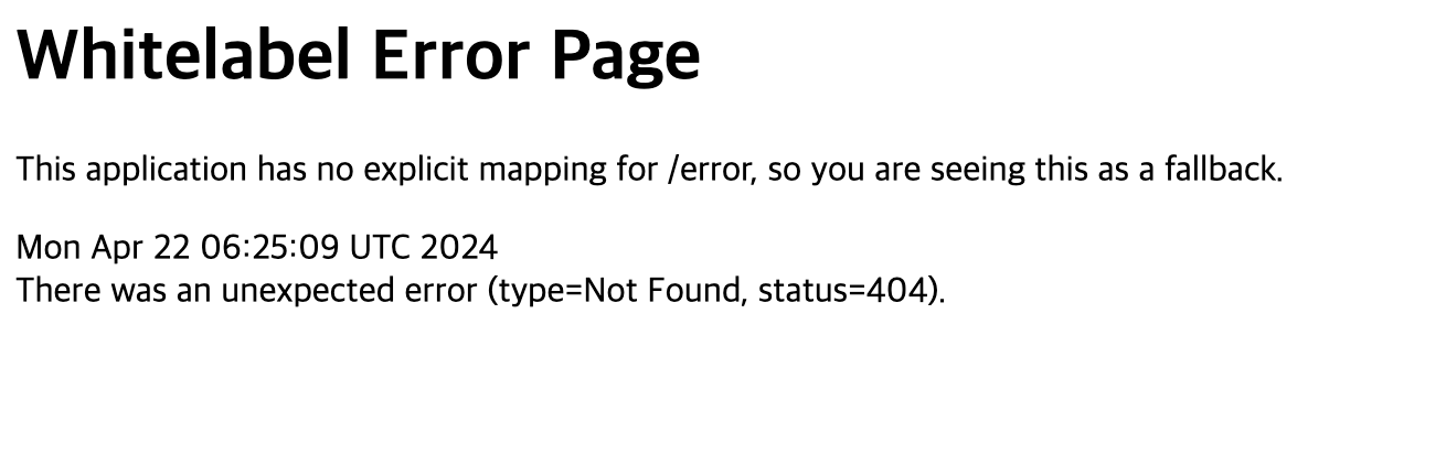 다시 도메인 클릭해보니, Whitelabel Error Page가 보인다! 정말 반가운 페이지였다 :)